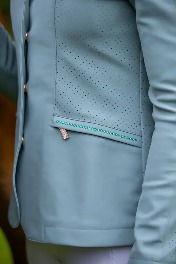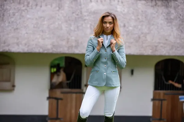 Deze limited edition Lavender Fields Show Jacket is chic en elegant. Gemaakt met zorgvuldig geselecteerde details, is het de perfecte wedstrijdjas voor een bekroonde performance. Gemaakt van kwaliteits stretchstof, is het gemakkelijk om in te bewegen, maar behoudt het ook een vrouwelijke vorm. De dubbele rij knopen met een verborgen rits onder de knopen zorgt ervoor dat je je veilig en zelfverzekerd voelt in de ring.