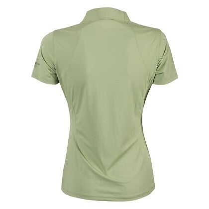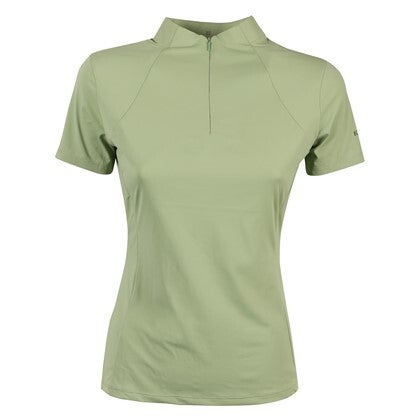 Shirt met korte mouw, opstaande kraag met een korte ritssluiting en het Equestrian Society logo op de linker mouw.Samenstelling: 90% nylon / 10% spandex.