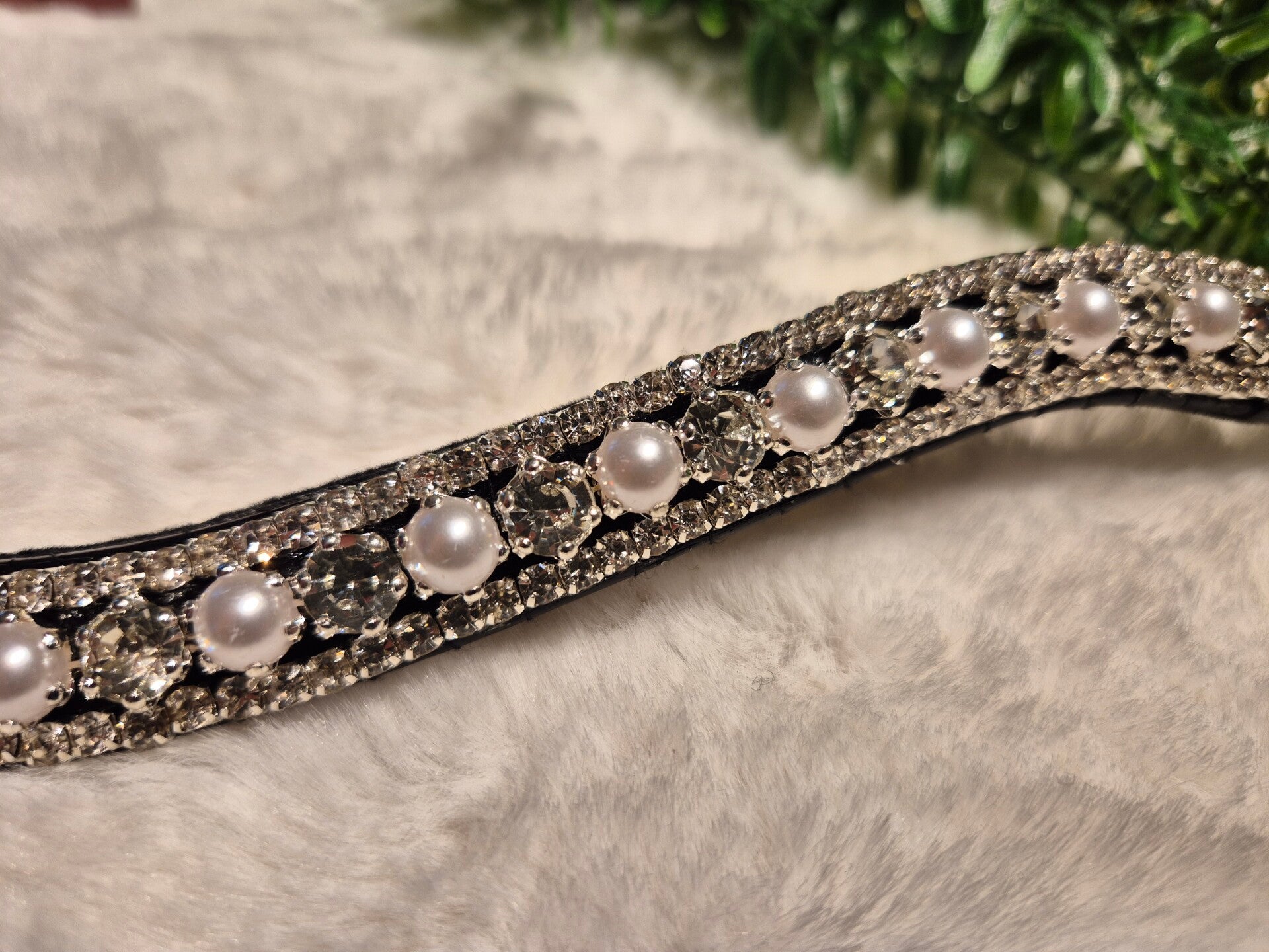 Frontriem Strass/Parels 383 Zilver 14 mm