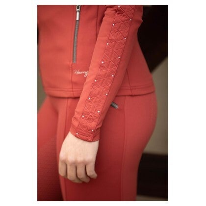 Vest met tweeweg ritssluiting, twee zakken met een ritssluiting, Equestrian Society logo op de borst en een sierstiksel met kristallen over de hele lengte van beide mouwen.