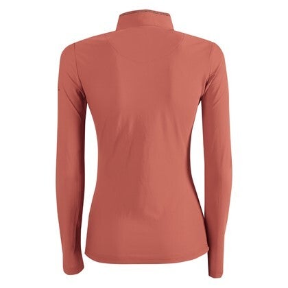 Shirt met lange mouw, opstaande kraag met korte ritssluiting, kristallen rondom de kraag en langs de rits en het Equestrian Society logo op de linkermouw.